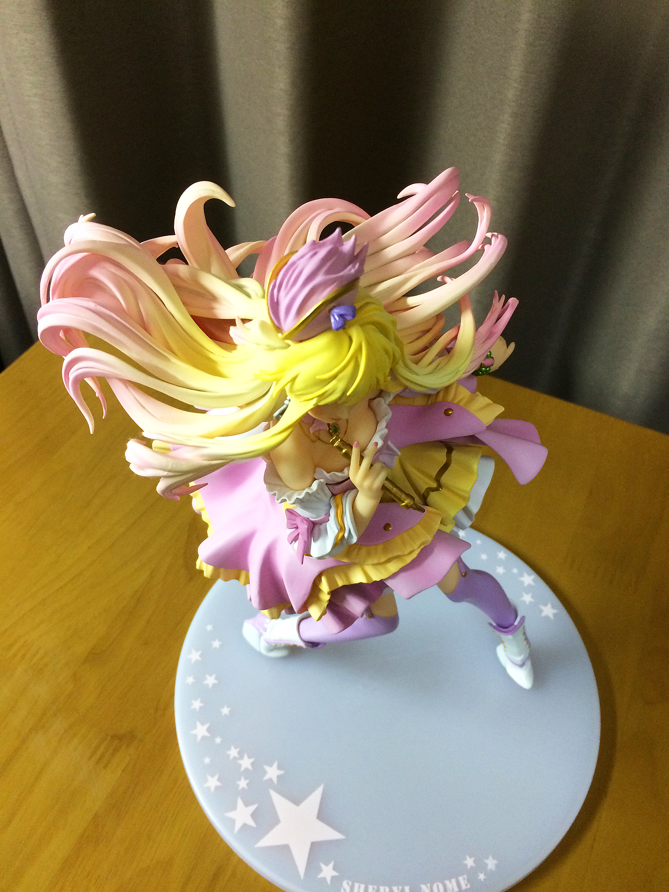 回り込み斜め上から。髪飾りのボリュームがどえらいが、これと髪の毛の台座の繋がりのみで本体を浮かせてるからすごい。