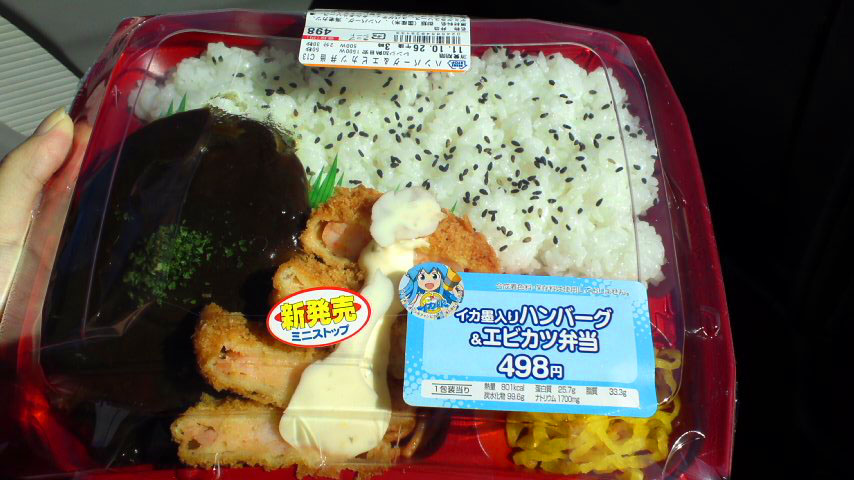 ミニストップに弁当買いにいったら、イカ娘フェアやってたんでつい買ってしまった。お弁当何買ったの~?と無邪気な好奇心で覗かれた時は変な汗が出たけど・・・イカちゃん可愛いです^^
